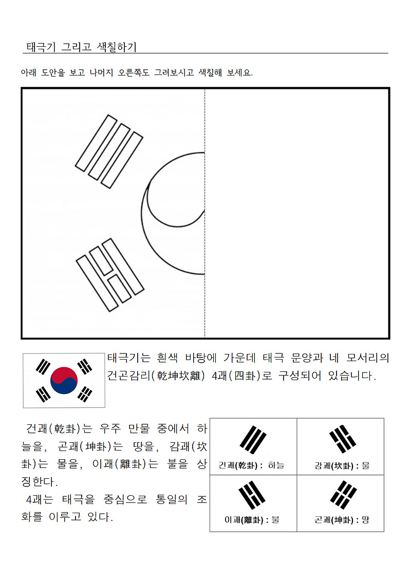 태극기 색칠하기 / 태극기 색칠하기 프린트 도안 / 사실은 한국당에서 무슨 집회를 한다든가 그러면 그분들이 다 태극기 세력들이지.