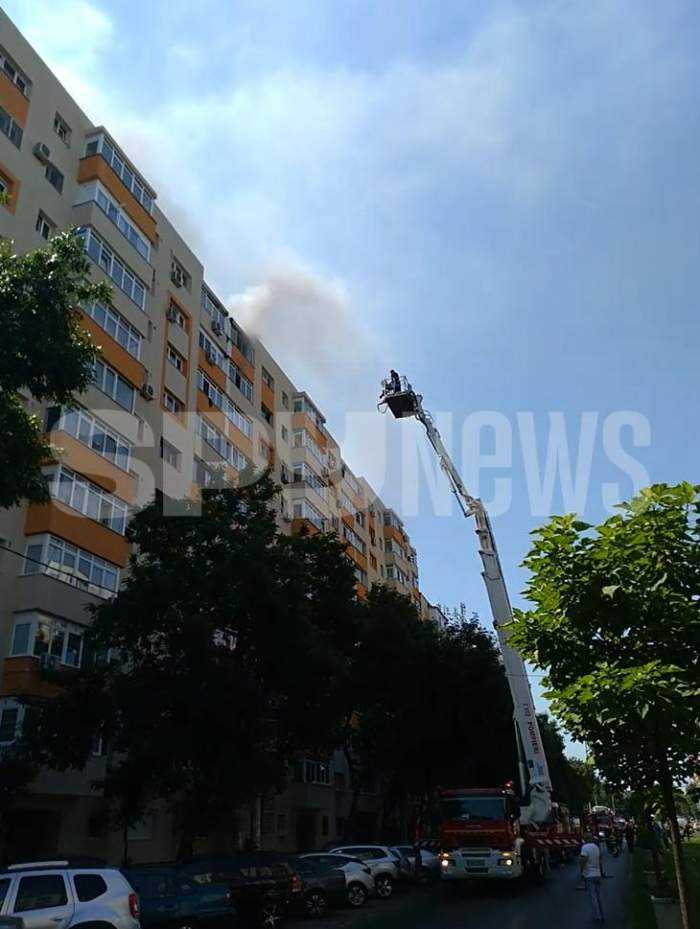 Un incendiu puternic a izbunit la un bloc din capitală.